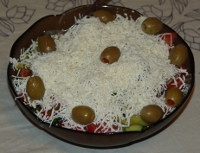 ショプスカ・サラタは代表的なブルガリアのサラタの一つです。シレネ(白いチーズ)、緑色のキュウリ、 赤い色のトマト が入っているので、ブルガリアの白ー緑ー赤の三色の国旗はこのショプスカ・サラタを表している というジョークがあります。
