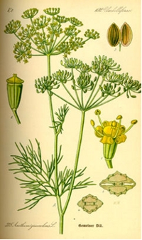 生育:原産地は南西ー中央アジアですが、暑い夏と高い日射量なら、どこでも栽培できます。 使用:5000年前のエジプトの医師たちがディルを使ったそうです。名前は「滑らか」の意味している通り、 ディルは消化を促すとかストレスを解消する効果があります。生の葉っぱはピクルス、サラダ、チーズ、 スープ、魚、ジャガイモ料理などに幅広く使われています。ブルガリアのヨーグルトスープのタラトールに はディルは欠かせません。葉っぱだけではなくて、種も使われています。特に、赤ちゃんのコリックに良く効きます。 ディルの葉っぱを乾燥すると、香ばしさがすぎになくなってしまうので、生で使ったほうがいいです。 店で販売されるディルはフリーズドライものなので、3ヶ月程度は持つそうです。
