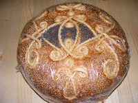 ブルガリアの主食であるパンは単なる毎日食べる物ではなく、命を支える物であり 命そのものを表しています。パンさえあれば、何とかなります。逆に、パンがなかったら 生きられないのでパンは他の食べ物と比べて特別に取り扱われています。例えば、パンを絶対に 捨ててはいけないとか乞食する人にお金をあげなくてもパンぐらいは断っては行けないなどの 決まりがあります。ブルガリアの祝祭日の食卓の中心に特別に飾られたパン が置かれます。このパンを焼く前に生地で羊、ヤギ、ブドウや小麦などの農産物の形を作って、パンの表面 に並べて、飾ります。このように、昔のブルガリア人は収穫が豊かであるよう、みんな元気であるように願っていました。 現在は農業をやっている人はかなり少なくなりましたが祭りの日に特別なパンを焼く習慣には変わりがありません。