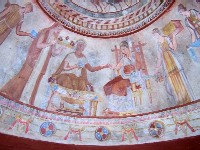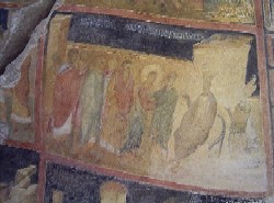 首都ソフィア郊外のボヤナ地区に建っている2階建ての 教会堂は10世紀後半に建てられ、 その後、第2次ブルガリア帝国の下で13世紀に中央棟が加えられた。教会の壁に様々な時代 の壁画が重なっているが最も有名なのは1259年に描かれたフレスコ壁画である。フレスコ壁画 とは壁に漆喰(壁土)を塗り、その漆喰がまだ乾いていないうちに水または石灰水で溶いた 染料で描かく絵なのでやり直しが効かないため(失敗した場合は漆喰をかき落とし、 やり直すほかはない)、高度な計画と技術力を必要とする。13世紀のフレスコ画では240人の 人物像が描かれており、そのうち最も印象的なのは教会の建築に大きく寄付した貴族カロヤン (севастократор Калоян)とその妻デシスラヴァ(Десислава)、あるいは ブルガリア皇帝のコンスタンティン1世と皇妃イリーナの肖像画である。
