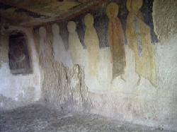 イヴァノヴォの岩窟教会群は、北ブルガリア、ドナウ川沿いのルセ市18km南に、 イヴァノヴォ村に近くにある。他のブルガリアの岩窟教会と違って、フレスコ画が よく保存されている。岩を刳り貫いて作られた聖堂などの建造物群は大きな修道院を成している。 この地方の洞窟群には、後のブルガリア正教会総主教ヨアキムが居を 定めた1320年代以降17世紀まで、修道士たちが住むようになっていた。 彼らは、僧房、教会群、礼拝堂などを硬い岩から切り出しており、修道院建造物群 はおよそ40もの教会群を頂点に戴いていた。その周りには、他の宗教施設用地が 300ほどあったが、そのほとんどは現存していない。修道院の建築物群の名声は、 その多くを13世紀から14世紀にかけてのフレスコ画に負っている。それらは 教会群の内の5つの教会に保存されており、中世ブルガリア美術の傑作として評価されている。