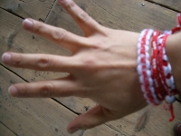 マルテニツァはブルガリア代表的な伝統の一つであり、白と赤糸で作った春のお守りです。 冬の終わりの始まりは3月1日とされていて、 本格的な春がやってくるまで元気に生けられるようにマルテニツァを手首に結ぶか、胸につけます。 3月1日が近づくと、ブルガリアのどの町でも至る所までマルテニツァの販売店が並んでいます。 花を咲かせた木を見かけたら、すでに春がやってきたことになるので、その木にマルテニツァを結びます。復活祭, Великден